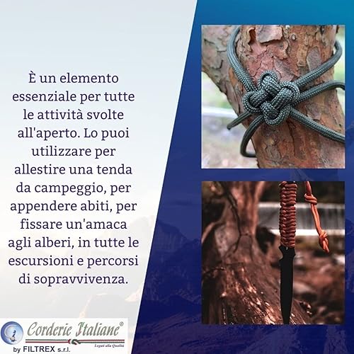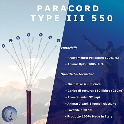 Paracord 550 Type III Basic, rosso 4 mm - 20 mt, anima 7 fili, 100% Made in Italy 006078920 Corderie Italiane