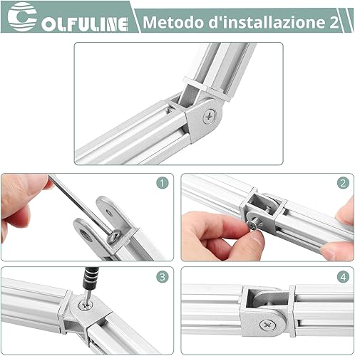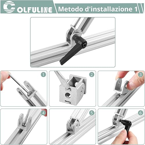 COLFULINE 2 Pezzi Connettori Angolari per Profili Alluminio in Lega di Zinco 4040 Nut 8 Cerniera per Profilo Flessibile Campo di Rotazione a 180° Connettore ad Angolo Regolabile Nero per Fai da Te 3D