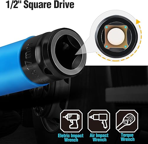 Bussole a Impatto 1/2', Set di 3 Bussola a Impatto 17/19/21mm, Cr-Mo, Adatto per il Cambio Gomme, con Custodia in Plastica