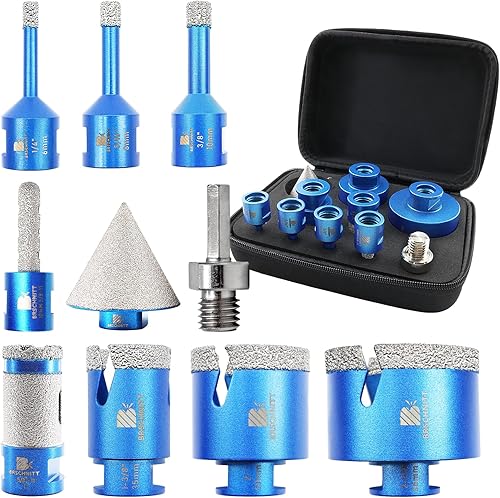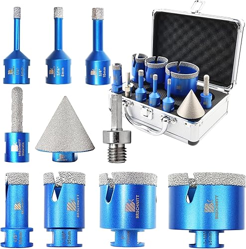 Set di punte diamantate per piastrelle, taglio diamantato e fresa da 25 diamanti, 50 mm, un adattatore per ceramica, granito, porcellana, piastrelle, gres porcellanato, muratura, 10 pezzi