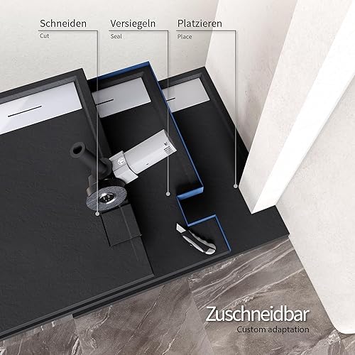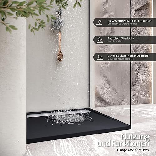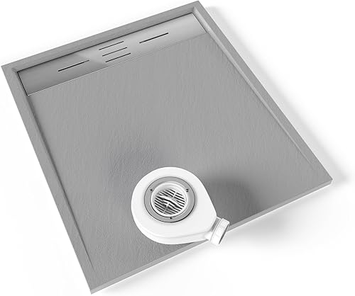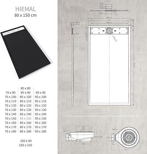 Piatto doccia SMC Hiemal 120 x 70 cm, bianco RAL 9016 – antisdrucciolevole, texture lavagna, antibatterico, resistente agli agenti chimici – Include valvola e griglia inox