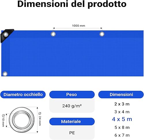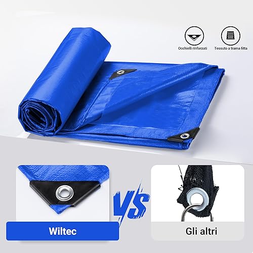 Wiltec Telone occhiellato blu 3 x 4 m resistente alle intemperie e a raggi UV, impermeabile, robusto telo di protezione in poliestere 240 g/m² con rivestimento in PVC