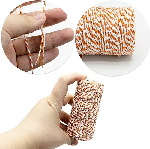 Cordino di spago in cotone, 100 m, colore arancione scuro e bianco, 1,5 mm, per lavori fai da te, lavori a maglia, appendere alla parete, giardinaggio e confezioni regalo