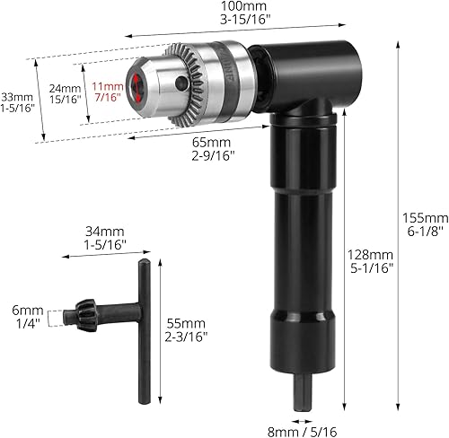 Adattatore Drill Angolo, Mandrino ad Angolo Retto 90 °, mandrino per trapano 0.8-10 mm, lega di alluminio, coppia massima 25 Nm