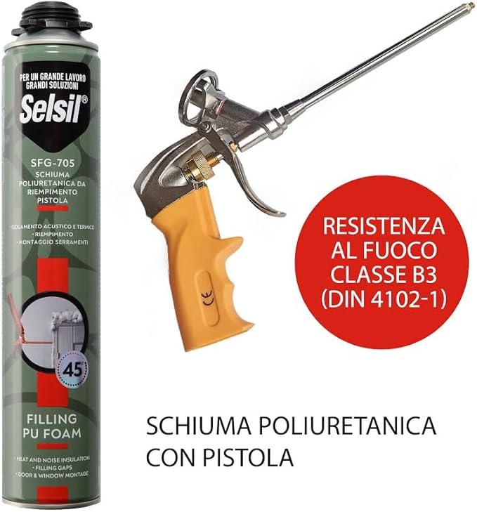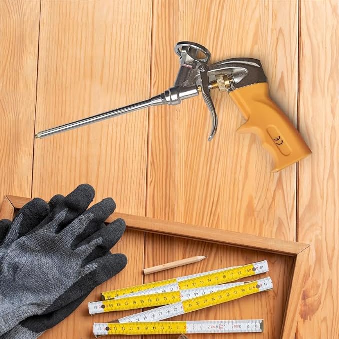 Kit Pistola per Schiuma Poliuretanica Modello Professionale in Acciaio con Otturatore in Ottone Applicatore Preciso e Resistente e Bomboletta di Schiuma Poliuretanica