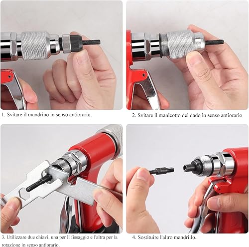 Proster Rivettatrice Pneumatica con 100Pz Inserti Filettati 1/4' Rivettatrice ad Aria Professionale per Rivetti M4 M5 M6 M8 M10 Pistola a Rivetto ad Aria per Decorazione Fabbricazione Macchine