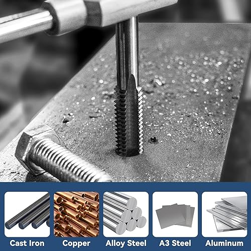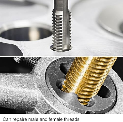 TA-VIGOR Filettatura a spirale Spina Maschio UNC 1/4-20 x1.27mm Filo, Filettatura a terra H2 3 Flauti, Acciaio HSS 6542, Attacco rotondo rivestito in titanio