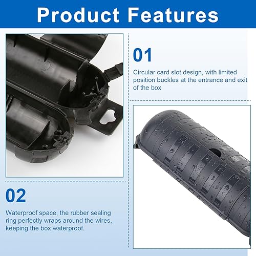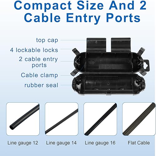 Scatola per cavi impermeabile, per esterni, colore nero, protegge il cavo da umidità, polvere e intemperie, ideale per giardino, terrazza, balcone o campeggio, facile da usare, robusta e durevole