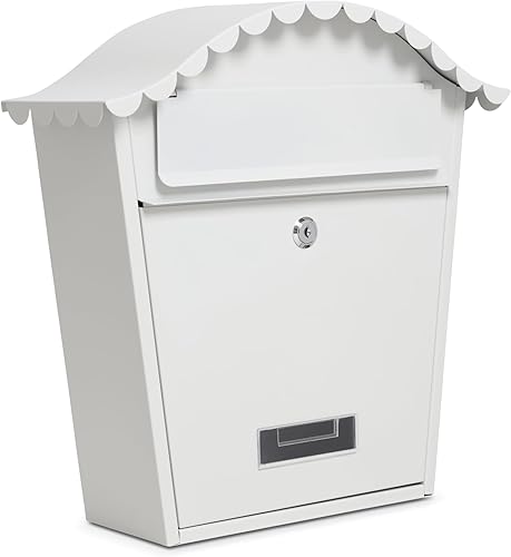 Assorted Collections Cassetta delle lettere da parete, con serratura con 2 chiavi, in acciaio zincato resistente alle intemperie, facile da installare, 36 x 13 x 37 cm (bianco)