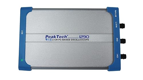 PeakTech 1290 – Oscilloscopio per PC a 2 canali (25 MHz) con USB e LAN, Software per PC, DSO, Oscilloscopio a memoria digitale (10 MiB/Ch), 20 Modalità di misurazione automatica - Per Windows