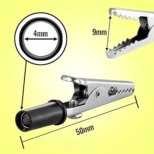 10x morsetti a coccodrillo di 50mm, in metallo con presa in plastica (nera - rossa), per il collegamento di cavi (conduttori elettrici)