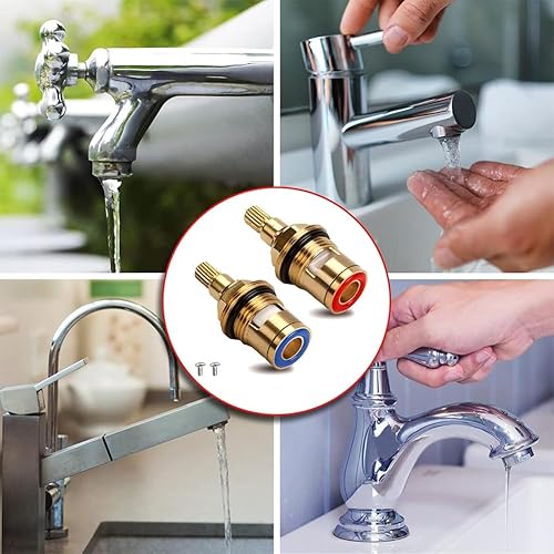 Valvola di Ricambio per Rubinetto, Cartucce per Rubinetto in Ottone e Ceramica con Rondelle, Rubinetto Valvola a Quarto di Giro G1/2' Valvola Rubinetti Acqua Calda Fredda Ricambi per Rubinetti, 1 Paio