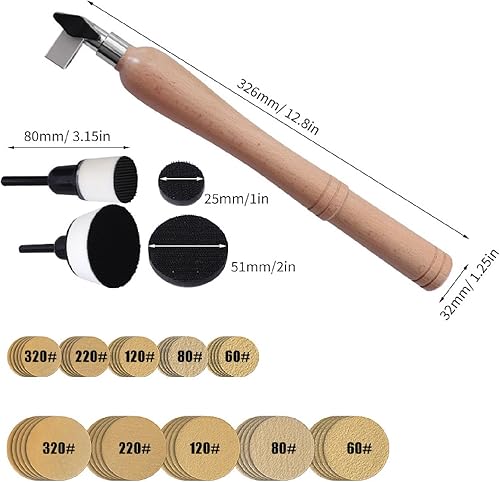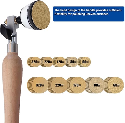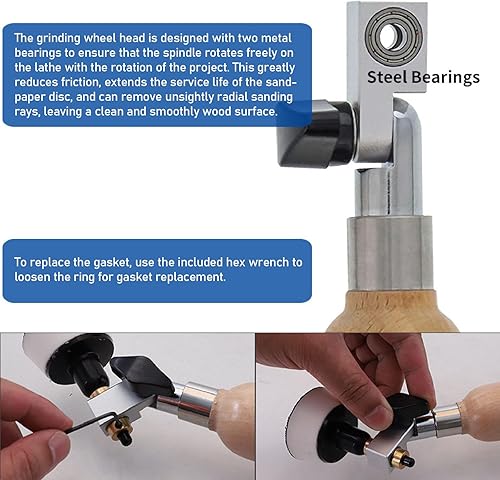 Kit Levigatrice Manuale per Ciotola, Cuscinetti 1 Pollice e 2 Pollici, 50 Dischi Abrasivi, Manico Lungo in Legno, Testa a Doppio Cuscinetto, per Tornio per la Lavorazione del