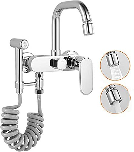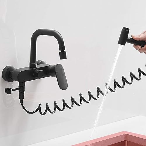rubinetto cucina a muro Rotazione a 360 ° a parete Acqua per lavello a parete d'acqua possono essere commutate liberamente Tutto rame Con pistola spruzzo pressione-placcatura