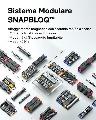 HOTO SNAPBLOQ™ S-A01 Set di Cacciaviti di Precisione Master 3.7V, 56PCS, 3 Coppie, Mini Cacciavite Elettrico, 250RPM, LED Luminoso, per elettronica, telefoni, laptop e progetti fai-da-te.