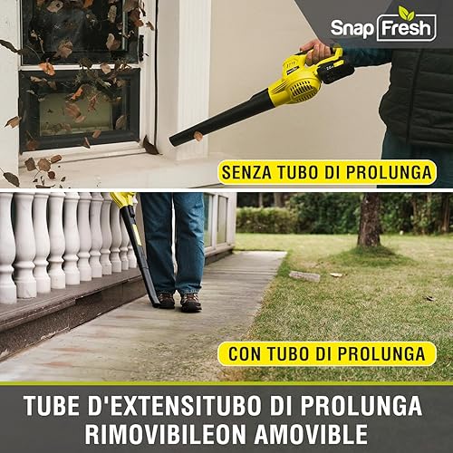 SnapFresh Soffiatore a Batteria 20V Soffiatore Elettrico Parkside Soffiatore per Foglie con Batteria e Caricabatterie 210 km/h 240m³/h / 2 Modalità /1,2kg per Foglie/Prato/Auto/Polvere (Giallo)