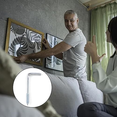 Elkuaie 100 ganci a vite, ganci a forma di L, viti, ganci ad angolo retto, gancio a vite in acciaio al carbonio, gancio ad angolo retto a forma di L, gancio a vite zincato blu