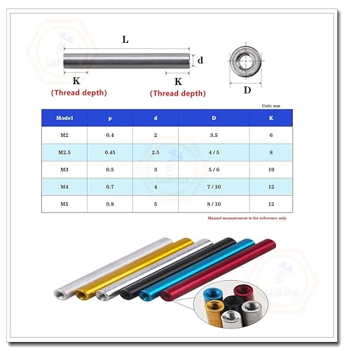 2 pezzi M5×60mm×10mm Colore primario Colonna rotonda di collegamento interna del filo della lega di alluminio, dado lungo cilindrico