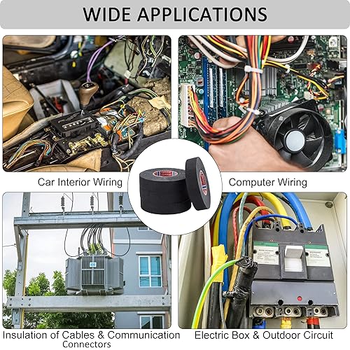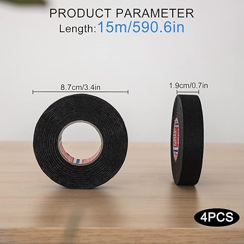 Nastro Isolante in Tessuto, 4 Rotoli Nastro in Tessuto Industriale Elettrico, Resistente Alle Alte Temperature Ridurre la Rumorosità per Cablaggi Riparazioni Automobile, 19mm x 15m Nero