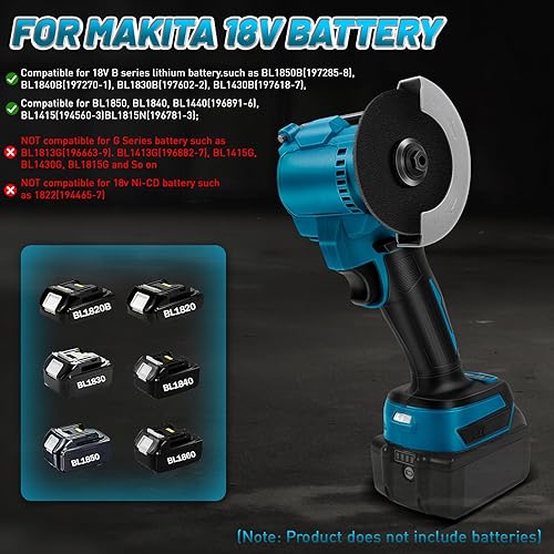 Smerigliatrice Angolare per Makita 18V, Smerigliatrice Professionale a Batteria, 76 mm, Motore Brushless, Protezione Disco, per Taglio, Smerigliatura, Lucidatura