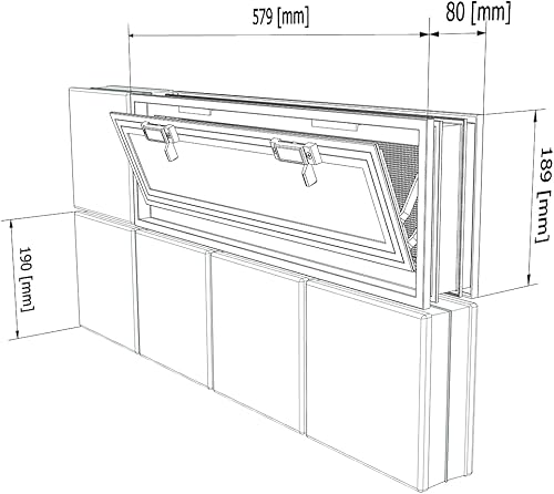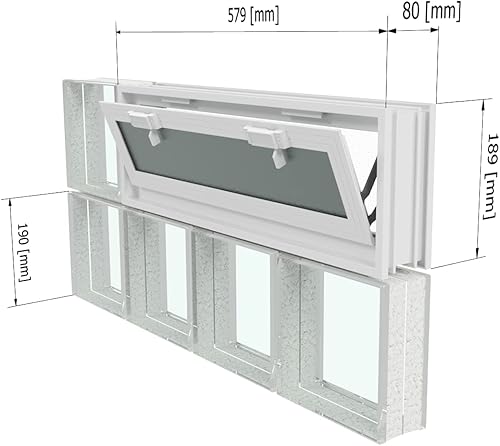 Finestra di ventilazione da inserire in una parete di vetromattoni o muratura | Dimensioni cm 57,9X19X8 | Unità di vendita 1 finestra