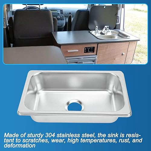Akozon Lavabo Rettangolare in Acciaio Inox RV 304 con Scarico Fognario 40 Mm per Barche, Caravan, Yacht, Barche (Spray Nero GR‑1465B)