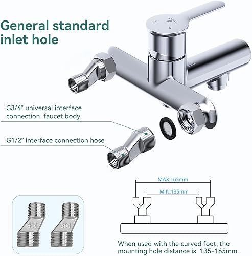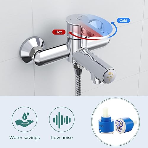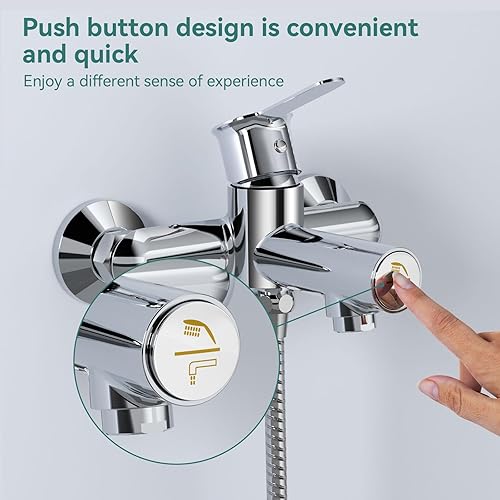 Rubinetto per vasca da bagno, Rubinetto per vasca da bagno con interruttore a pressione, Rubinetto in ottone per il montaggio a parete, Miscelatore monocomando cromato per doccia per bagno