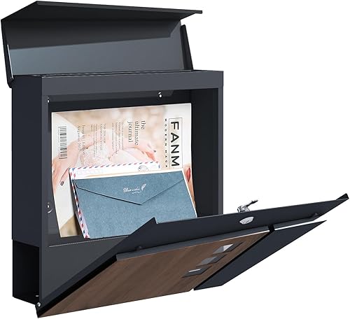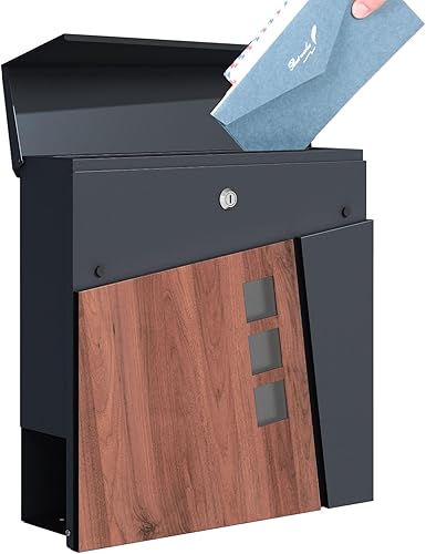 SCHARTEC® Cassetta delle lettere in legno e antracite con scomparto per giornali, moderna e grande