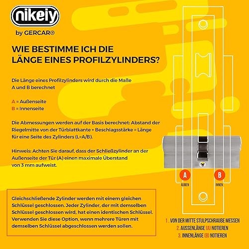 GERCAR Pro+ - Set di 2 cilindri con pomello con chiave unica, 45/45, serratura a cilindro per porta con protezione antiperforazione e 10 chiavi con scheda magnetica, 90 mm, A:45 B:45