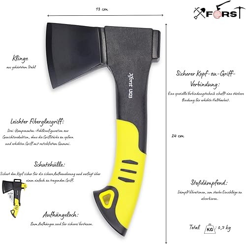 Ascia da Campeggio UX23, Accetta Outdoor con Protezione Lama e Rivestimento Antiaderente, Manico in Fibra di Vetro, Lunghezza 23 cm