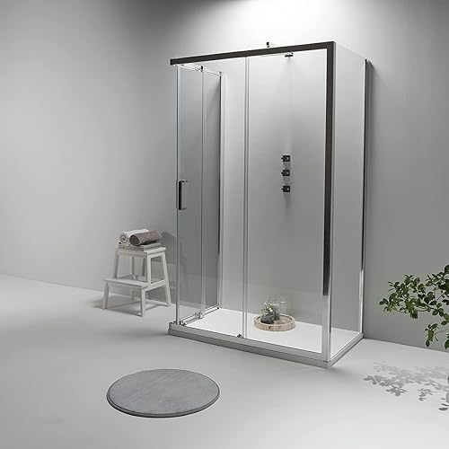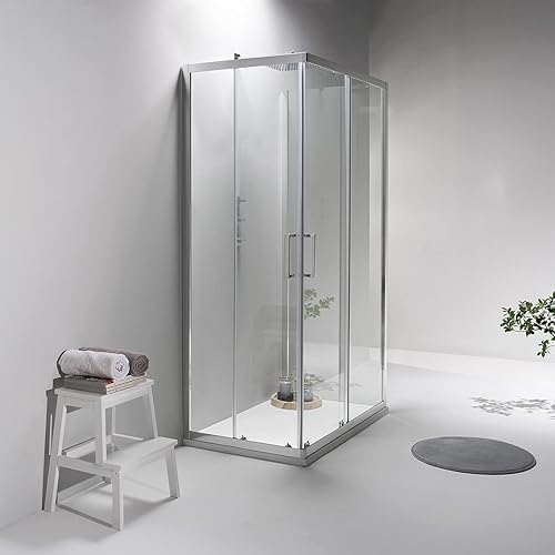 Box Doccia 3 Lati - Cabina Doccia con Porta Scorrevole, Cristallo Temperato 6mm, Anticalcare con Profilo Cromato e Chiusura Magnetica (80x80x80, Trasparente)