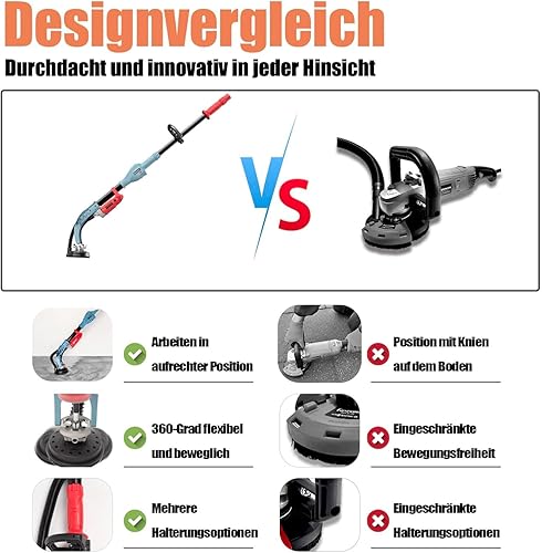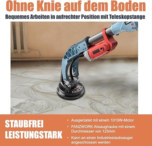 FANZWORK - Smerigliatrice per calcestruzzo, 1010 W, con asta telescopica fino a 1,20 m, con mola diamantata da 125 mm e borsa per il trasporto, regolabile in velocità, ideale per levigare
