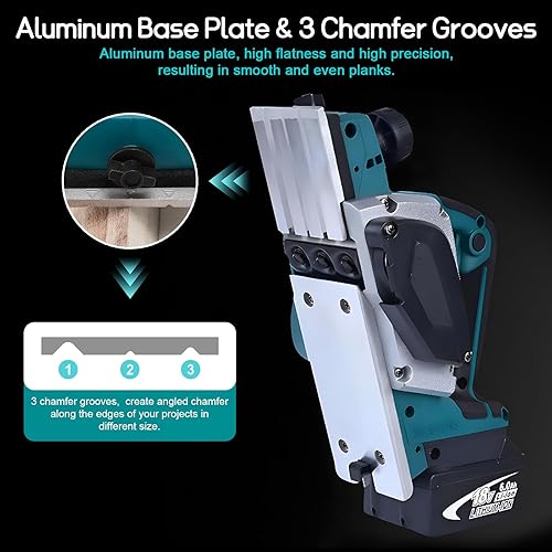 Pialla a Batteria compatibile con Ma-kita 18V Batteria, 16500RPM Pialla Elettrica per Legno a Batteria, Pialletto Senza Fili Piallatrice per Legno, Larghezza di Piallatura da 82mm e Profondità da 2mm