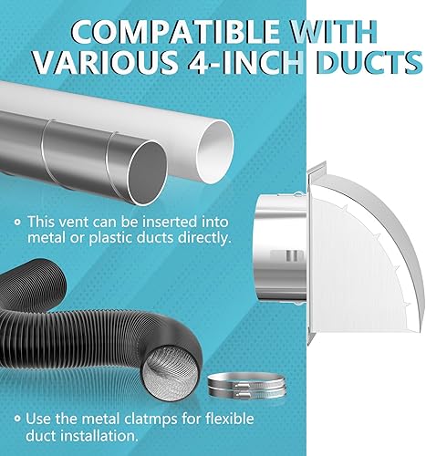 Griglia Aerazione 100mm, Griglia Aerazione Regolabile, Griglia Ventilazione, Sportello Antiriflusso Integrato, Griglia Regolabile, per asciugatrici, cucine, Ø 10 cm (15,5 * 15,5 cm), Nero