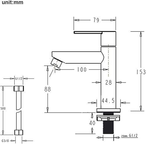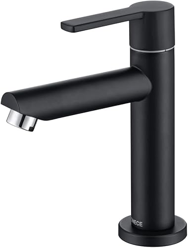 Rubinetto Bagno Lavabo Solo Acqua Fredda in Ottone, Rubinetti per Toilette per Gli Ospiti, Aeratore Rimovibile, Cartuccia in Ceramica, con Tubo di Collegamento, Nero