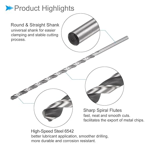 Punte da Trapano Elicoidali Acciaio ad Alta Velocità 6542 Extra Lunghe, Diametro 9mm Lunghezza 300mm, Punta Trapano Dritta Twist Jobber Ossido Nero per Metallo Plastica Alluminio