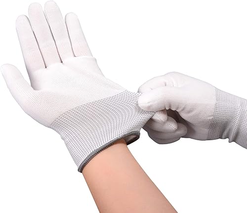 Ehdis 6 Paia Nylon Guanti di Montaggio Antiscivolo Senza Cuciture, Guanti da Lavoro per riparazioni, Industria automobilistica, finissaggio, Assistenza Auto, Officina