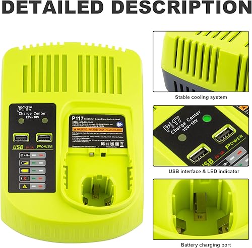 RB18L50 18V 5Ah Batteria di ricambio per Ryobi 2 pacchetti con caricabatterie a doppia porta di ricambio per Ryobi P117 12V-18V One Plus Series USB per Ryobi P107 P108 RB18L15 RB18L40