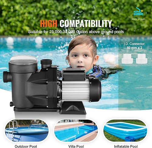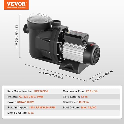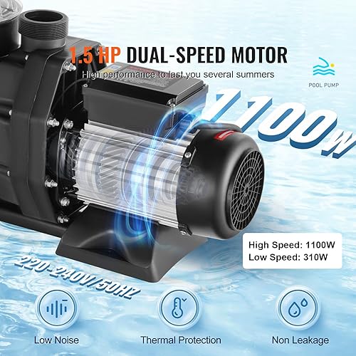VEVOR per Piscina Fuori Terra, 220 V a 240 V a Doppia Velocità 1450/2860 giri/min 1800 W 33000 L/H max. Potente, Per Piscina a Risparmio Energetico per Piscina Fuori Terra