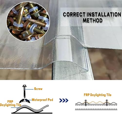 Lamiere Ondulate in FRP,Pannelli da Tetto Trasparente,Lamiere Ondulate in FRP,Antipioggia Pensilina Tettoia da 1.2mm,Copertura Tettoia Isolante,Pannelli da Tetto(Color:12pcs,Size:0.9*1.4m/35*55in)