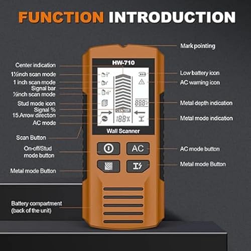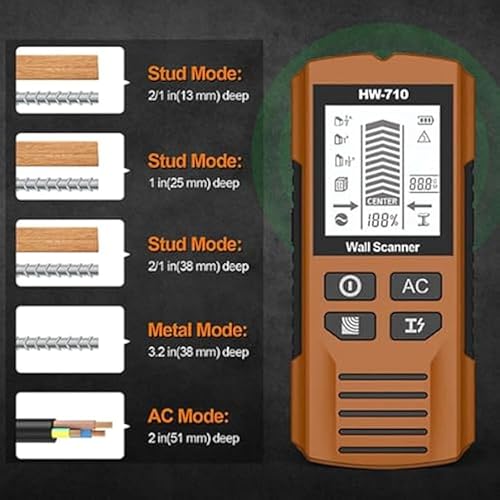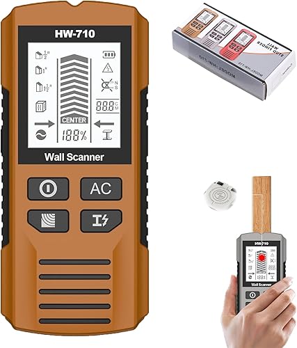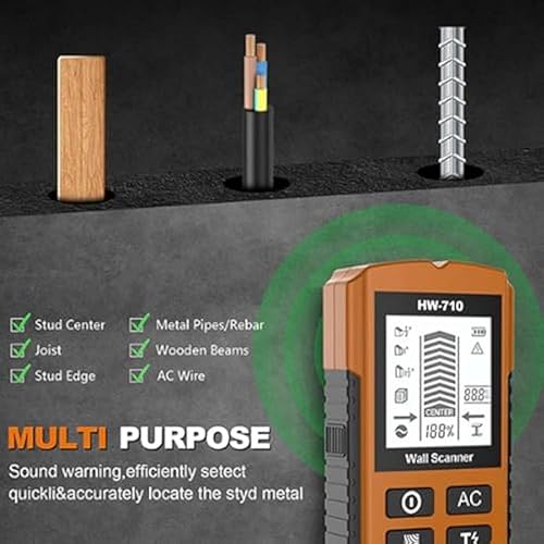 Multifunctional Handheld Metal & Wall Detector, Upgraded Portable Wire Pipe Power Scanner, 5 in 1 Wall Stud Finder Scanner for Detecting Metal, Wood and Ac Cables in The Wall (Red)