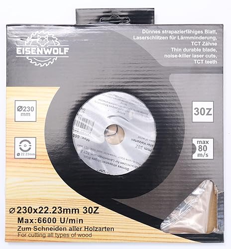 Lama da 230x22,23 mm, lama circolare per legno con 30 denti TCT inclinati e tagli laser per la riduzione del rumore