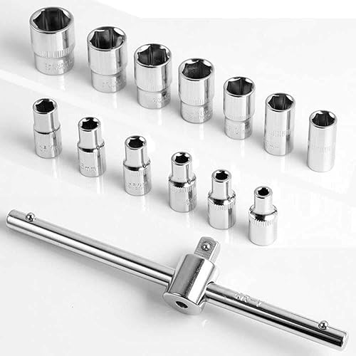 Set Chiavi a Bussola con Cricchetto 46 Pezzi Attacco Cacciavite Esagonale Chiave In Valigetta di Plastica Accessori