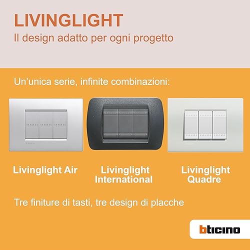 Bticino LNC4804BN Placca Livinglight Air 4 Moduli, Bianco Puro