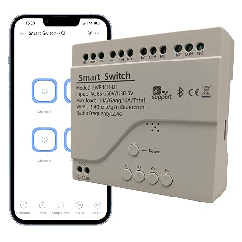 Interruttore a 4 canale Smart Wifi Interruttore momentaneo/a scatto, Casa intelligente fai-da-te, Supporto eWeLink APP Controllo Bluetooth AC/DC7-32V, Compatibile con Alexa Google Home