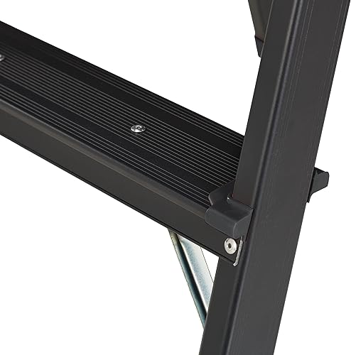 Relaxdays Scala in Alluminio, 2 Gradini, Pieghevole, Carico Fino 120 kg, Scaletta Bilaterale, Rialzo 39x38x40 cm, Nera