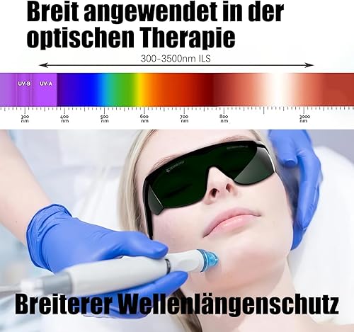 Occhiali Protezione Laser UV 300-3000nm OD4+ CE - Per Luce Rossa & IPL Professionale - Montaggio Regolabile (Norme EN 166, ISO 12609) - Uso Medico ed Estetico