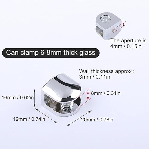Morsetto di Vetro, Supporto Vetro Regolabile, Vetro Regolabile Clip, 4PCS Staffa in vetro regolabile Staffe mensole vetro Supporto Mensola Vetro Reggimensola Vetro per Vetro Spesso 6-8 mm