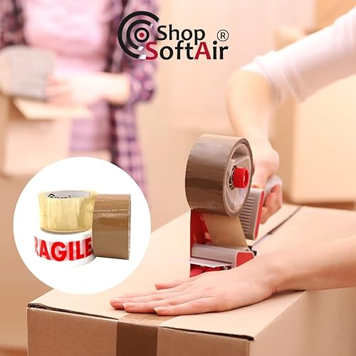 Shop SoftAir® Nastro Adesivo Rotoli da Imballaggio 50x66m Metri Marrone Trasparente Fragile per Dispenser Pistola in Kit a Scelta (N. 1 Dispenser Pistola da Imballaggio)