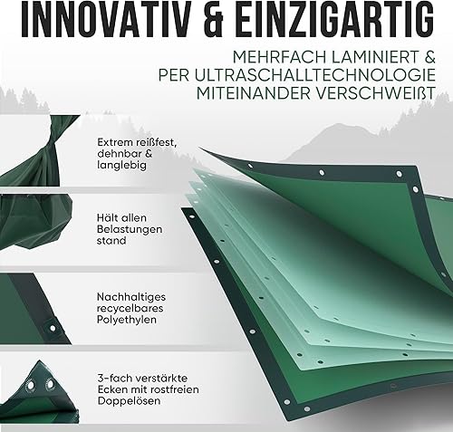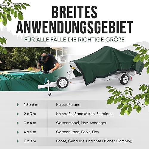 Telone di copertura di alta qualità, 4 x 6 m, impermeabile e resistente ai raggi UV, con occhielli rinforzati a 3 strati, telone in tessuto versatile, per legno, protezione, campeggio